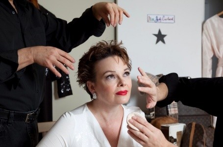Based on voice tapes from the mid-1960s that were recorded for her autobiography, The Judy Monologues is a creative look at a life that has been written and spoken about a great deal over the past 40 years. In terms of technical quality, the opening night performance got off to a bumpy start, with the poor sound making Garland's voice almost incomprehensible on the speaker. As the show begins, we meet the performer herself (played by Garland doppelganger Kimberly Roberts) who is silently sitting in her dressing room next to an ancient-looking tape recorder inside a suitcase. Although Roberts' Garland does not utter a word in the role, her famous voice comes from the three narrators sitting behind her. Clad in shirts of black, gold, and—of course—red sequins, Darren Stewart-Jones, Philip Cairns and Michael Hughes each take turns acting out Garland's voice tapes.