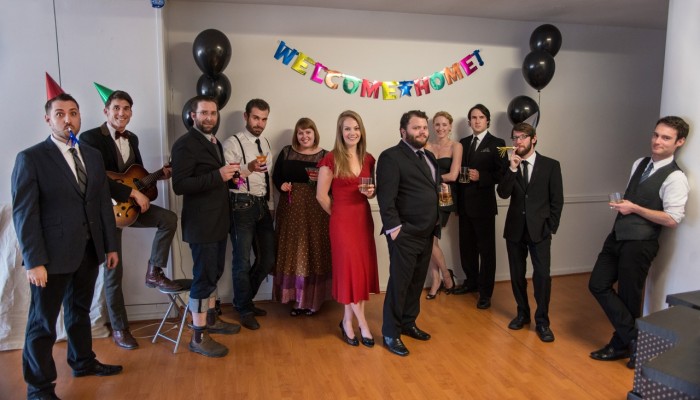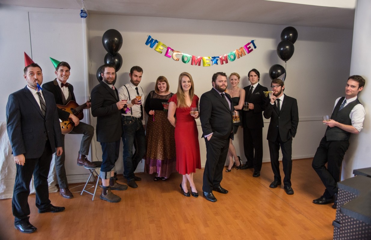 A 20th century take on Shakespeare's Elizabethan-era comedy, the production is styled as a post-war homecoming party circa 1945, and the audience is welcomed into the intimate bar space (the house of Leonato, governor of Messina) to the tune of victory songs such as "Boogie Woogie Bugle Boy."