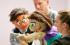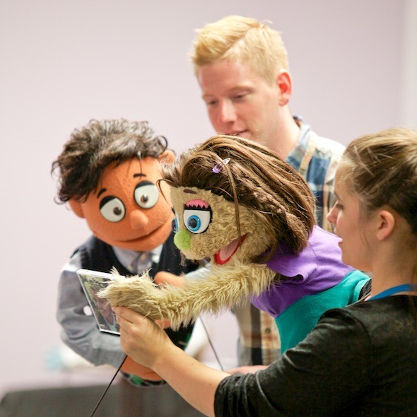 JM: We have been very lucky to work with an amazing puppeteer, Mike Petersen, who has been showing us all the ins and outs of how to properly use a puppet! I honestly didn’t think that I would enjoy working with a puppet as much as I do. I haven’t been this fascinated by an art form in a long time, so it’s been an incredible experience for me!