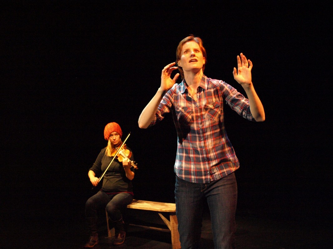 A one-woman show performed by the energetic Johnson, Miss Caledonia captures the audience’s heart in the first few moments as we meet Peggy and her mother and father, who live on the Douglas Farm on Rural Route 2 in Caledonia. Although the stage features only Johnson, a wooden bench, and musician Alison Porter seated in a chair in the corner playing a violin, the audience can easily visualize the infamous lopsided log cabin and outhouse as described. Peggy shows off a wall of pictures of her favourite stars—Bing Crosby, Roy Rogers, Elizabeth Taylor, and Debbie Reynolds. These are the people she admires, and she is especially inspired by Debbie Reynolds, a former farm girl from Texas who entered a beauty pageant and got discovered. One afternoon, while relaxing after a long day of farm chores, she opens the Hamilton Spectator to find an advertisement for a new Miss Caledonia, and sets her sights on entering a beauty pageant, much to her mother’s apprehension. What ensues is both comical and heartwarming.