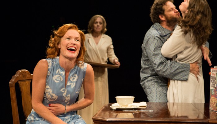 Staged in the round, this evenly paced production features recognizably English sets by Ken MacKenzie, lovely costumes by Patrick Clark, effective lighting by Louise Guinard and delightful sound design by composer Creighton Doane. Director Ted Dykstra gets terrific performances out of this top-notch cast: Boyes is wonderful as the bossed around brother-in-law Reg; Reid steals many scenes as his busybody wife Sarah; Condlln is believably frustrated as the singleton sister Annie; Dennis gets lots of laughs as the kind but dim-witted Tom; Mennell shines in the role of the sharp-witted Ruth, and Schultz seems born to play the part of the cheeky, attention-seeking Norman.