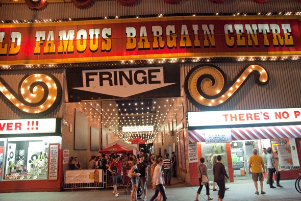 The Toronto Fringe Festival is celebrating its 25th Anniversary this year with a new and improved Fringe Club at Honest Ed's. In addition to the usual beer tent, food vendors, 16 Visual Fringe exhibits and six Alley plays, the 2013 Fringe Club programming now features Fringe After Dark, a series of free events on weeknights at 9pm. Highlights include: Board Game Night (July 4), Yoga with Beer (July 8), Truth or Dare (July 9), the Fringe Awards Ceremony (announcement of Patron's Pick, Best of Fringe Uptown, the Tosho Cutting-Edge Award, and the 25 Hour Play Contest on July 10), and a Ghost Story Competition hosted by Eric Woolfe (July 12).
